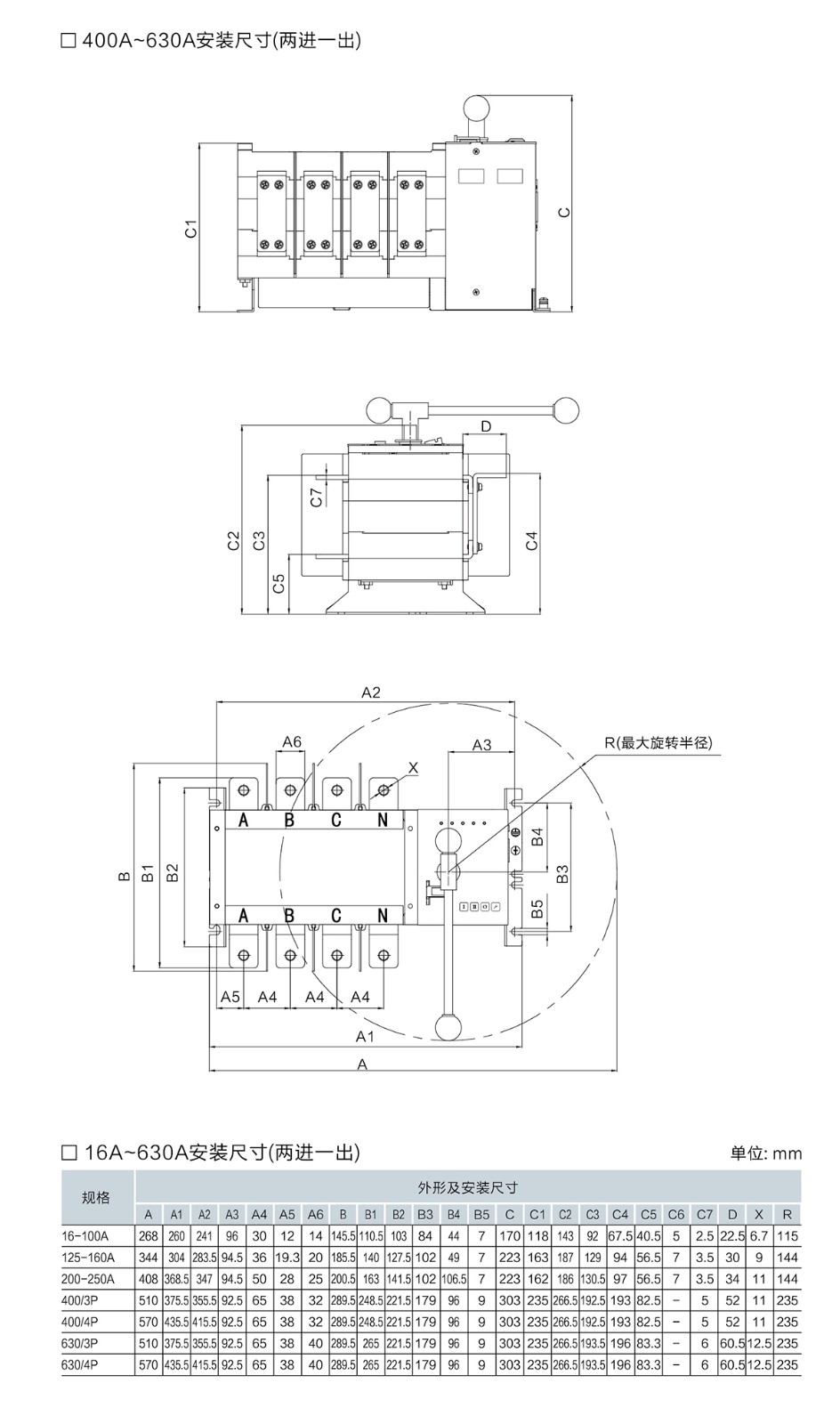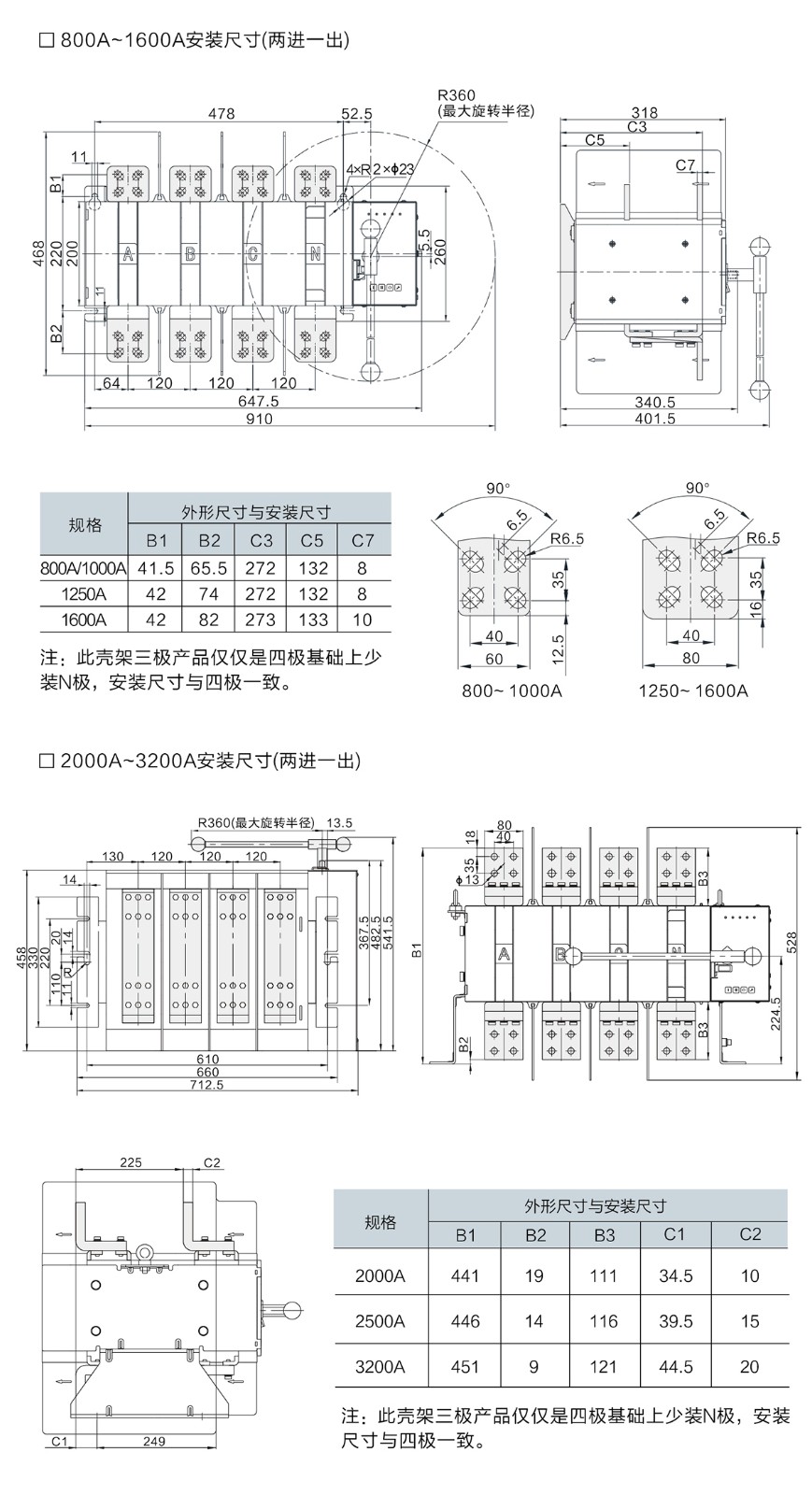 SFP1系列ATSE由開關(guān)本體與轉(zhuǎn)換控制兩個部分組成,開關(guān)采用電機和電磁線圈驅(qū)動,轉(zhuǎn)換速度快,轉(zhuǎn)換控制器的電源采取常用,備用電源的AC220V作為工作電壓。NA型是實現(xiàn)了專用一體化的ATSE,將智能控制器安裝于開關(guān)本體內(nèi)部的緊湊型結(jié)構(gòu),用戶只需將主回路接通就可以投入使用,方便用戶接線。N型為分體式外接控制,控制器與開關(guān)本體之間用一條專用電纜線連接使其安裝、接線更加方便。一體式、分體式同時都具有對兩路三相電源的過電壓、欠電壓、缺相等故障檢測功能;可增選帶有發(fā)電機組啟、停信號輸出功能(主電源故障時延時約3秒左右發(fā)出,當主電源恢復正常后延時3秒左右關(guān)閉)。