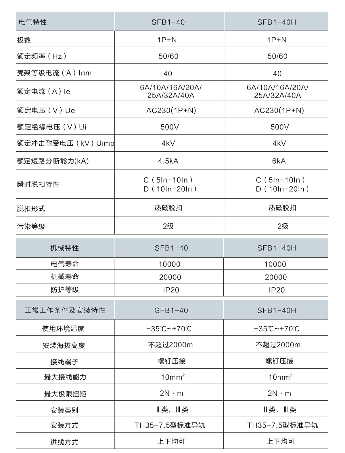 小型斷路器SFB1-40系列