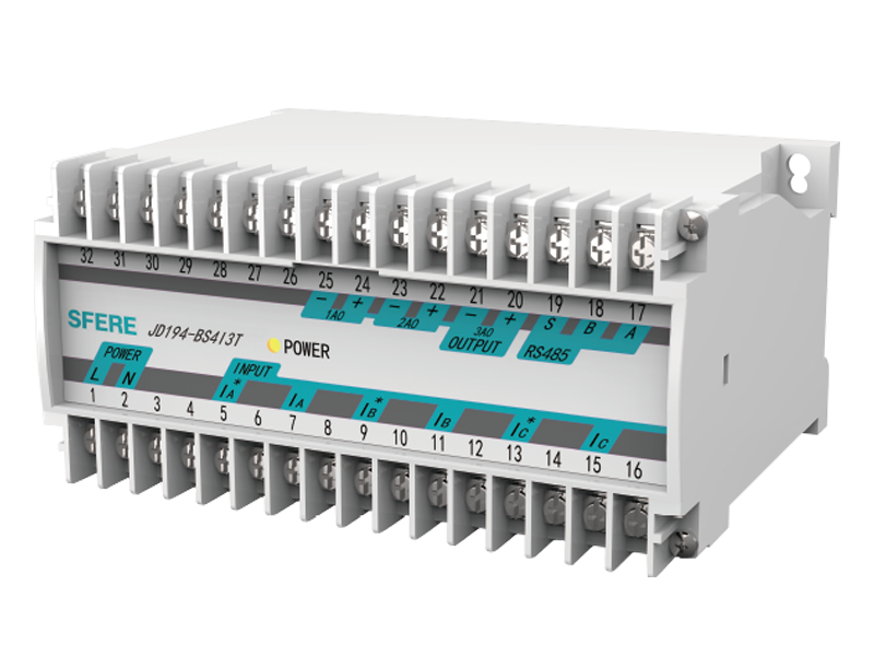 JD194-BS4P測量三相電流或電壓信號,隔離變送輸出三路模擬信號,帶RS-485通訊輸出。