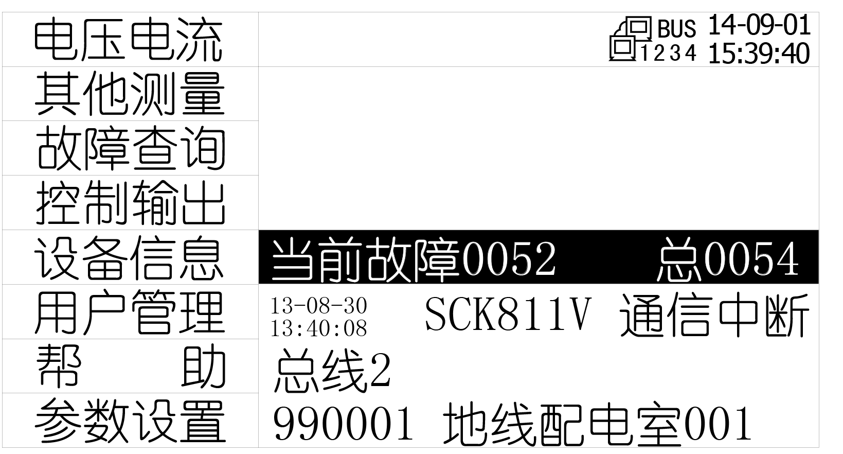 當現場發生通信總線故障、傳感器自身的功能模塊運行故障及傳感器所監控設備的電源故障時,監控器在最長20秒內檢測到故障狀態,顯示界面立即自動跳轉至“當前故障”界面