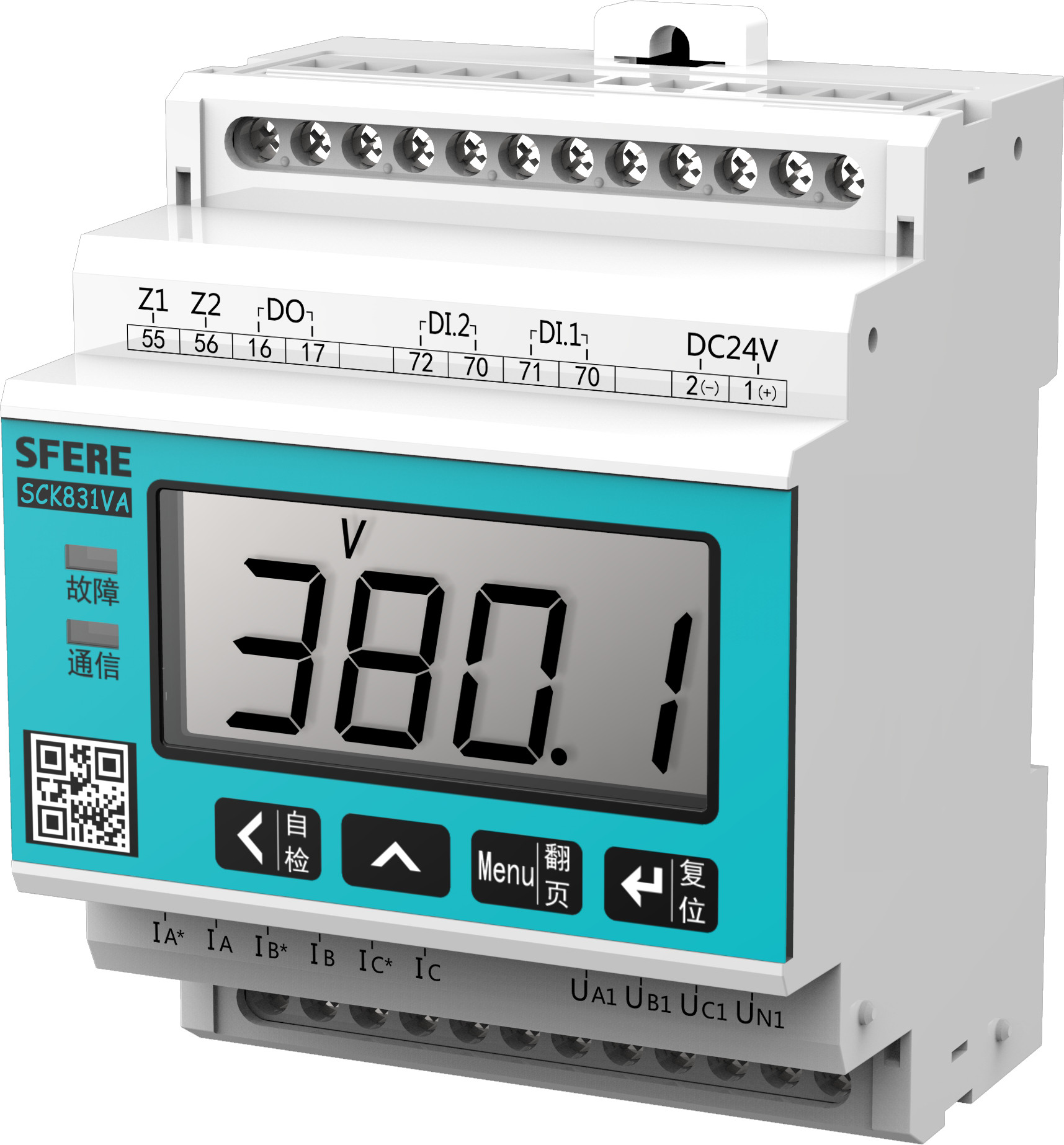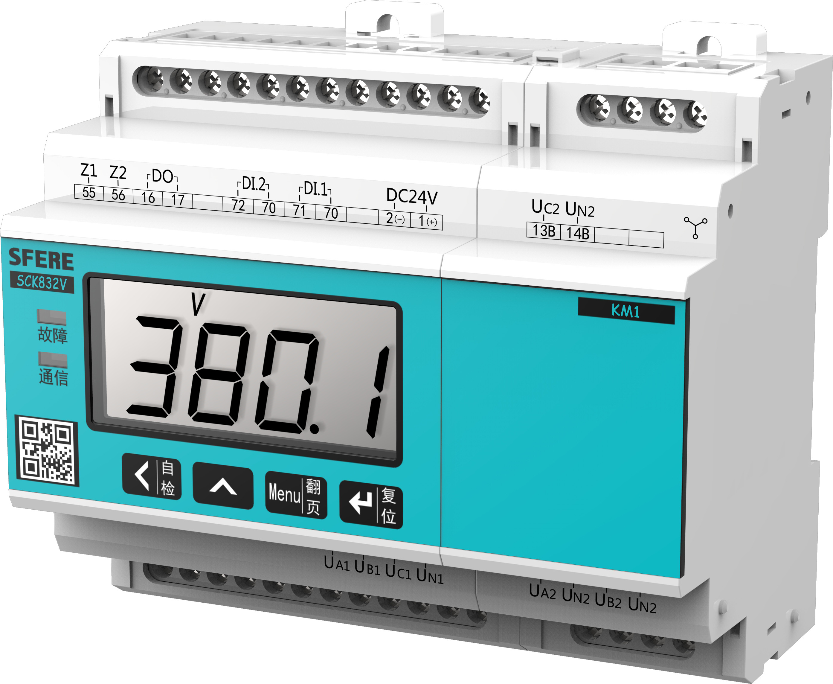 SCK832VA+JK除了監測電壓、電流外,還可通過開關量輸入功能實時采集雙電源轉換開關斷路器狀態。另外,帶有繼電器輸出功能,支持遙控、故障報警等多種模式:遙控模式下可通過消防設備電源狀態監控器進行繼電器動作或釋放;故障報警模式下可根據傳感器探測到消防電源故障時動作,且可設置手動復位方式和自動恢復方式。