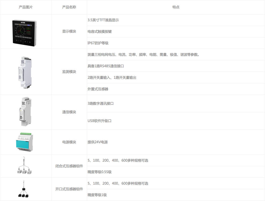 一條總線最多能接入32個SFERE700-M1測量模塊,SFERE700-M1測量模塊采集電量數(shù)據(jù),測量模塊可根據(jù)客戶現(xiàn)場不同需求選用,也可滿足定制化要求。SFERE700-P電源模塊給整個系統(tǒng)供電,可選配SFERE700-C1通信模塊及SFERE700-D1顯示模塊。